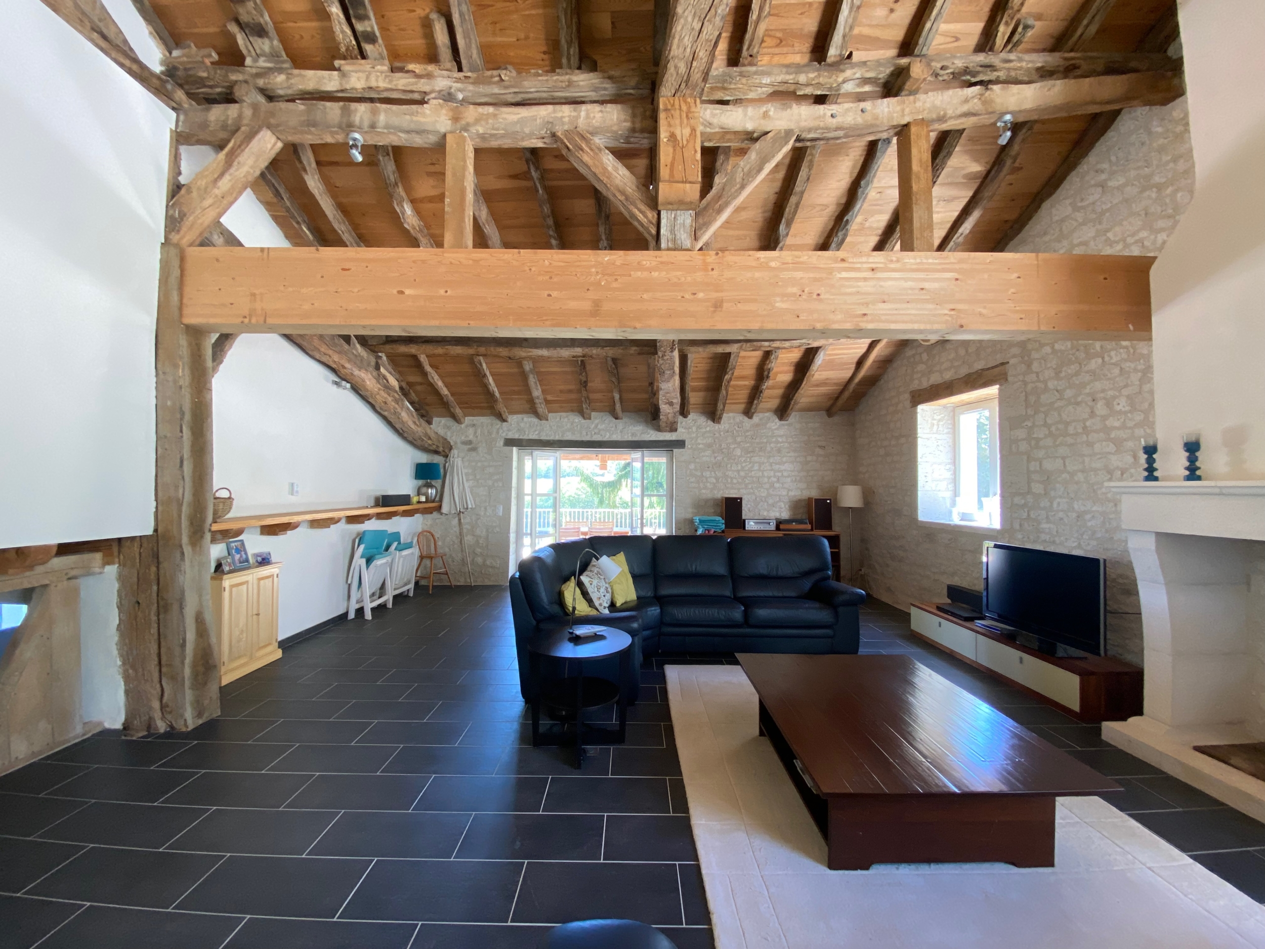 A large open stone hangar (95m²) currently serves as a parking area but could be transformed into a summer kitchen or additional accommodation, subject to planning permission.